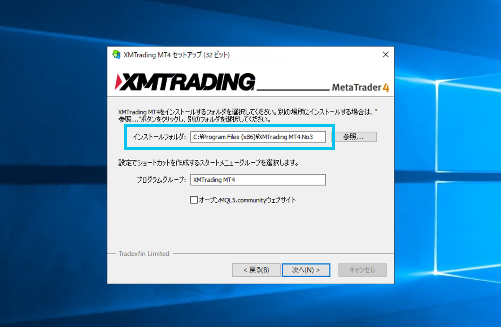 変更しないとMT4が上書きインストールされるので、複数個インストールすることができません。