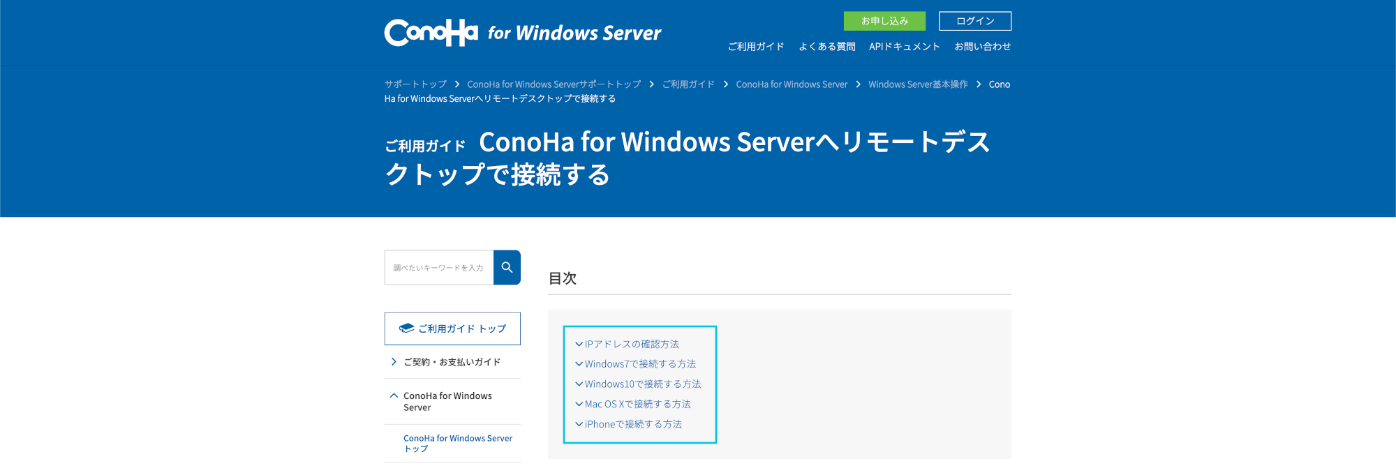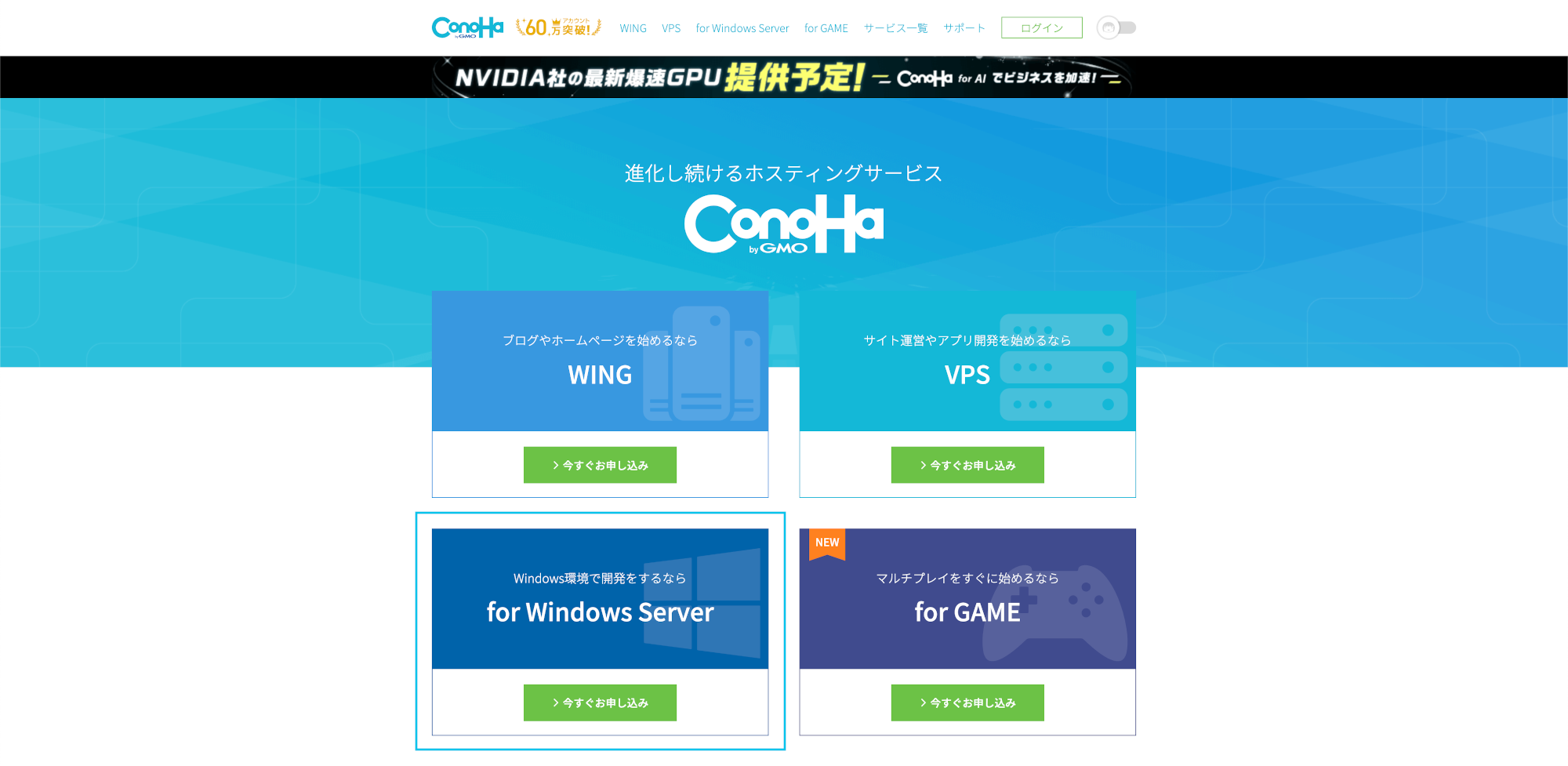 次のリンクよりConoHaのサイトへ移行し、「for Windows Server」を選択します。