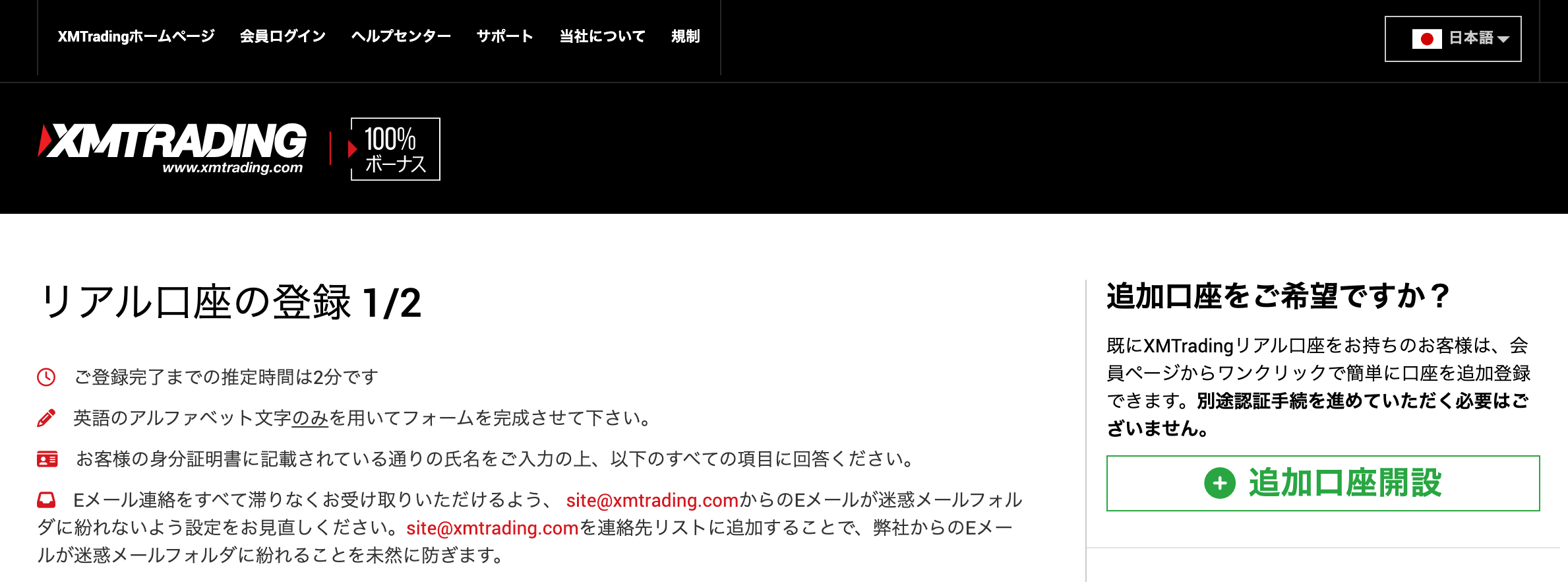 すでにXM口座をお持ちの方は、こちらから追加口座の開設をお願いします。