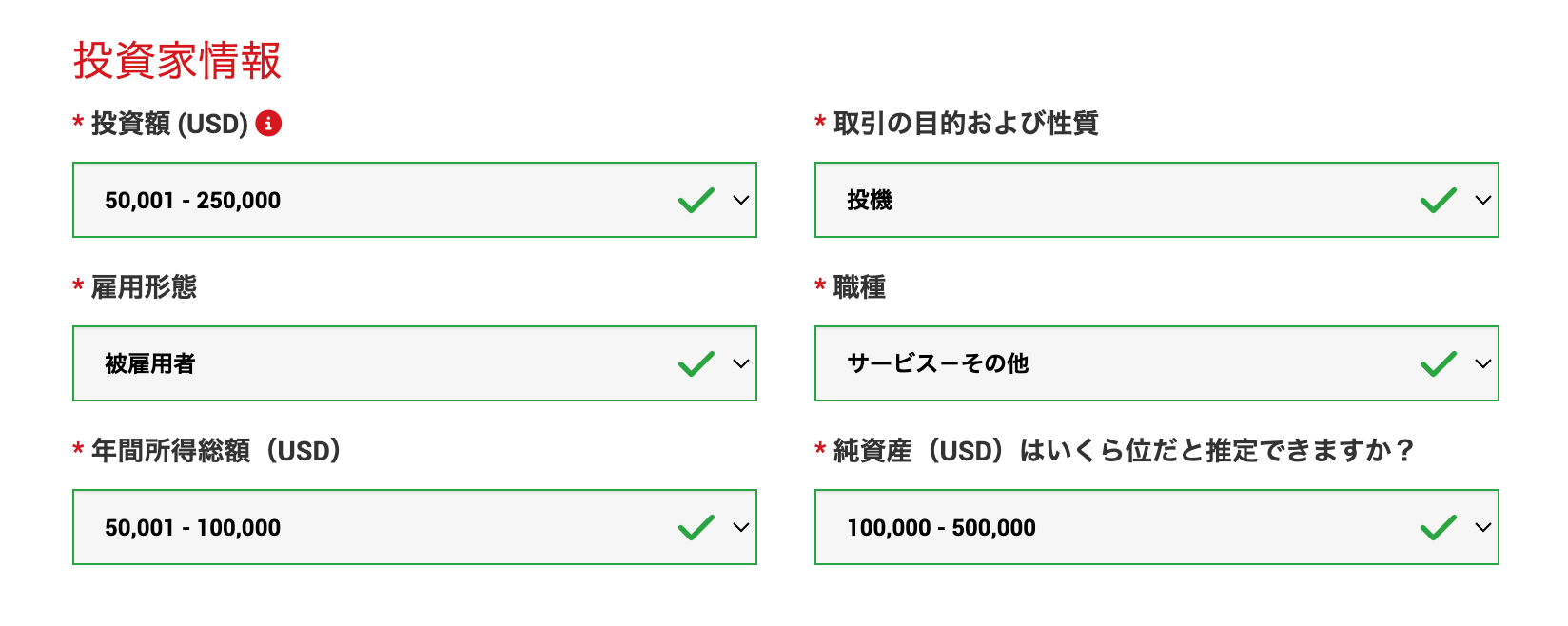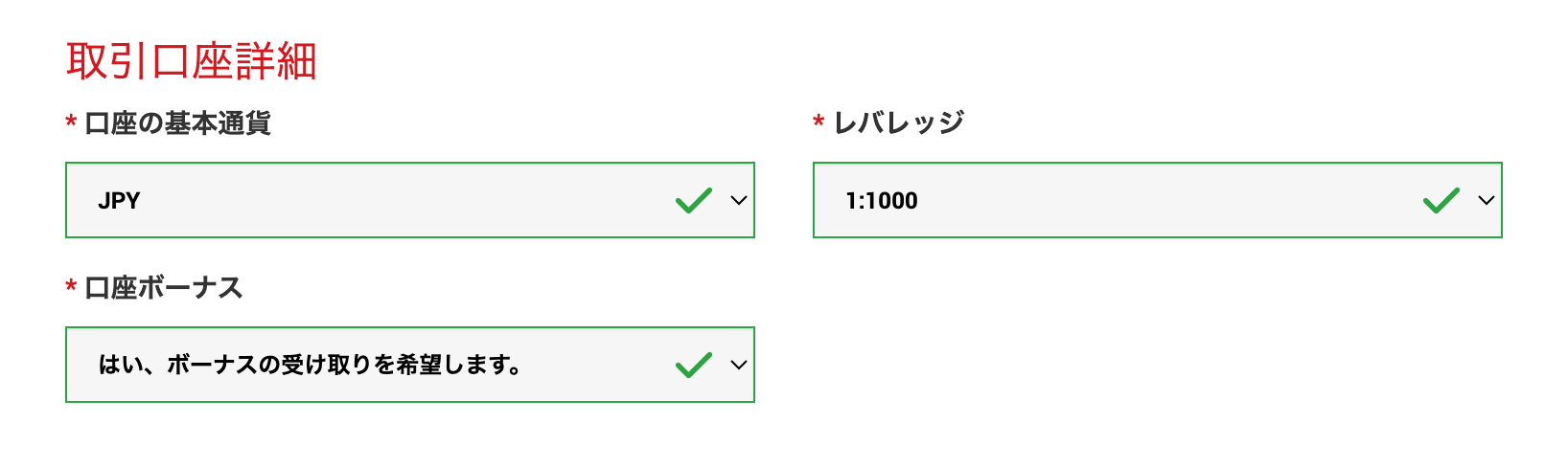 - 口座ボーナス(はい、ボーナスの受け取りを希望します。)